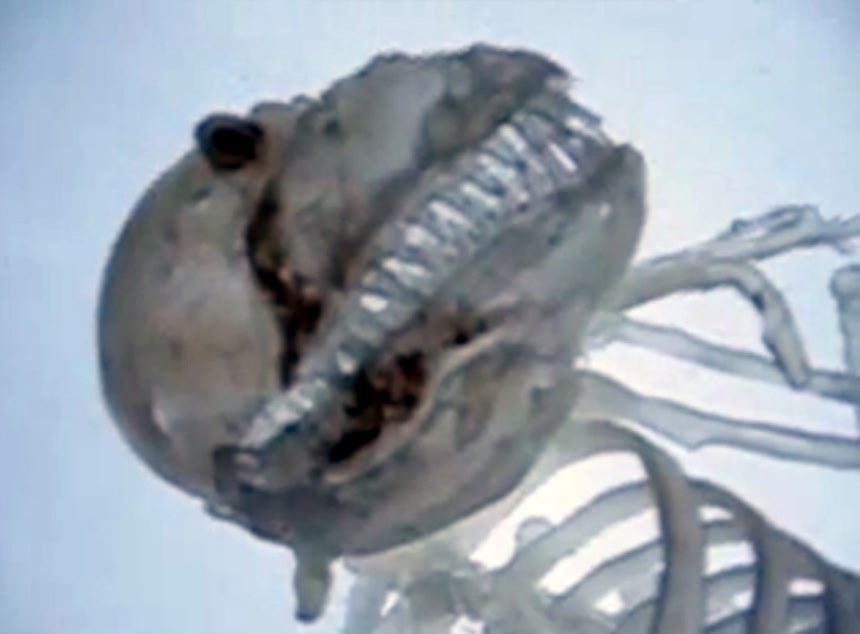 2007年の6月5日、米コロラド州ローリンズヒルにて発見されたというエイリアンのような恐竜のような白骨2体の映像。尻尾が異様に長く体の割りには頭部が大きい。