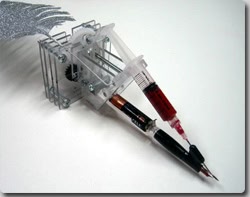 予め採血しておいた血をインク代わりにしてやっているんじゃ。
