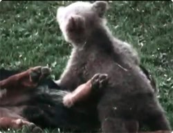 お母さんを失って孤児となったコグマは、スロベニアの農場で飼育されることとなった。その農場にいる犬さんがコグマの面倒を良く見てくれているそうで、仲良く草原の上でゴロゴロと遊んでいるよ。動くテディベアみたいでほんとうにかわいいんだ。今のところは。