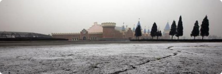 この画像を大きなサイズで見る中国北京に建設予定だった巨大テーマパーク「Wonderland」は、土地の買収がうまくいかず1998年に建設がストップ。膨大な借金をかかえどうすることもできずに、未完成のまま13年間時を刻んでいるという。