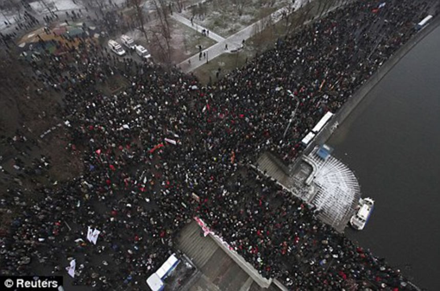 この画像を大きなサイズで見るもしかしたらプーチンは宇宙人をも味方につけているのかもしれない?と思わせるような出来事が発生した。ロシア各地では、下院選での不正疑惑に抗議する大規模なデモが行われているが、12月10日、抗議者2万5千人が集まったモスクワ、ボロトナヤ広場にて、未確認飛行物体が上空に現れた。