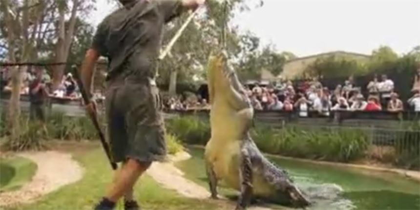 この画像を大きなサイズで見るワニといえども、おとなしいタイプもいればアグレッシブなタイプもいてその個体により性格は異なる。オーストラリア、シドニーにあるワニの動物公園には、様々なタイプのワニが存在するが、体長5メートルのイリエワニ、エルヴィスさん(オス、推定年齢50歳)は闘争心に溢れるアドレナリン全開な荒ぶるワニさんの1匹である。
