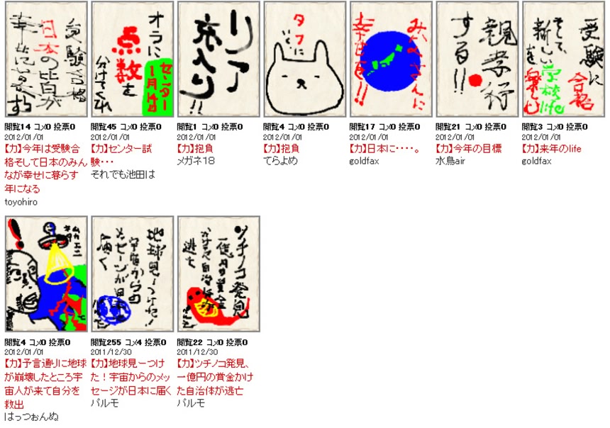 【PSヴィータが当たるお年玉付】カラパイア書初めコンクール「2012年に何が起きる?」