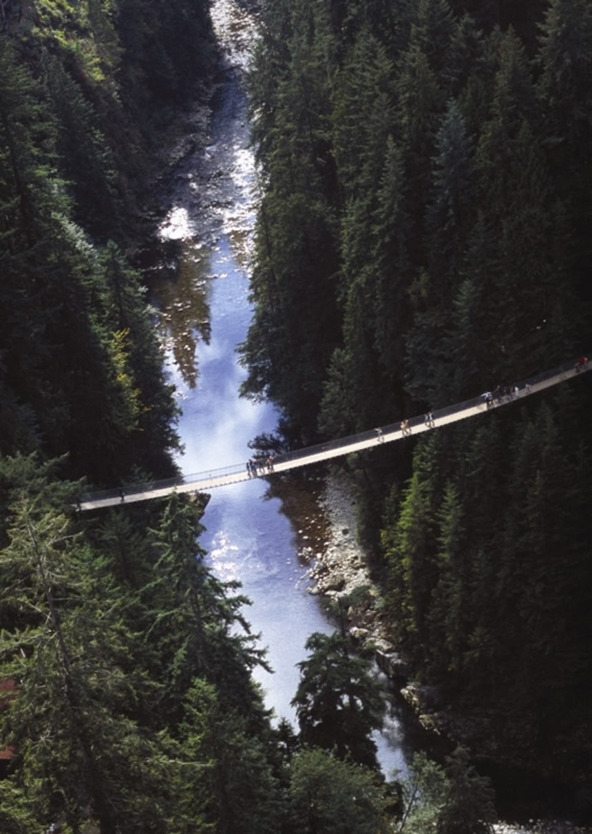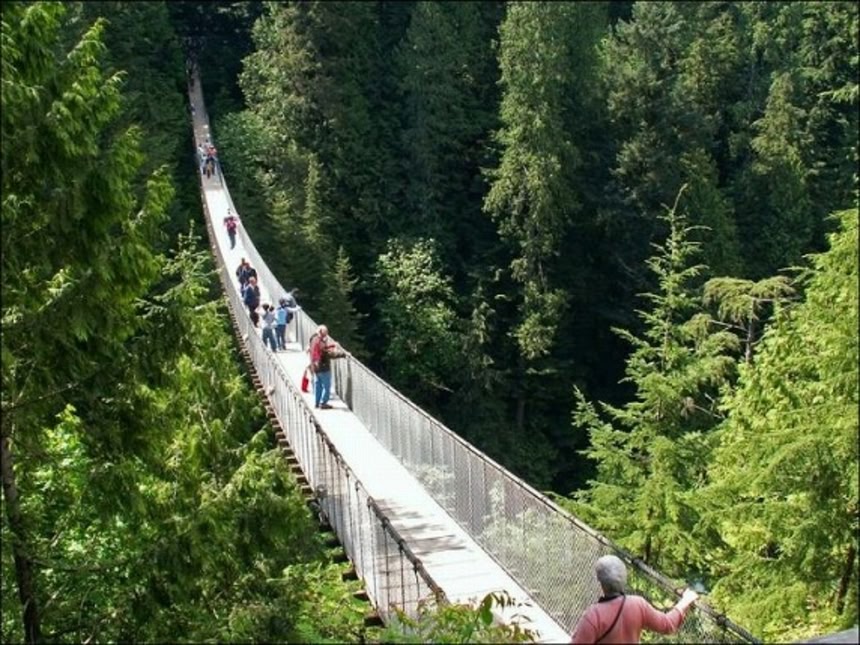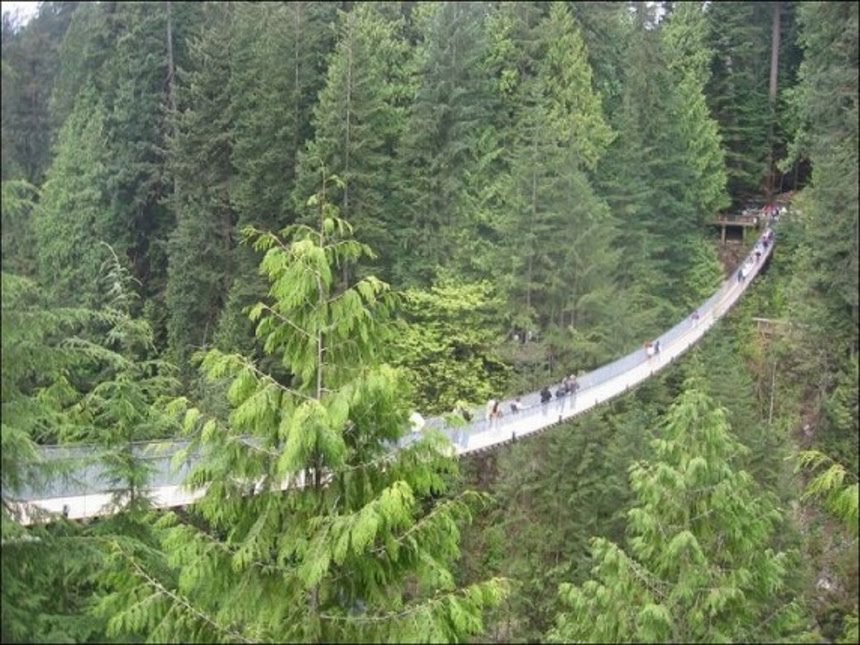 カナダ、バンクーバーにあるカピラノ渓谷には、高所70メートルのところに、全長137メートルのカピラノ吊り橋が存在する。1889年に設置されたというこの橋は、当初は麻や杉で作られた簡素なものだったそうだ。今は丈夫なワイヤーでできているものの、渓谷を通る風の影響で左右にユラユラと揺り動かされる。それでもこのエキサイティングな橋を渡りたいという観光客が後を立たないそうだ。高所恐怖症なのでパルモには絶対無理だ。