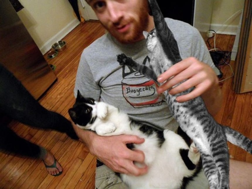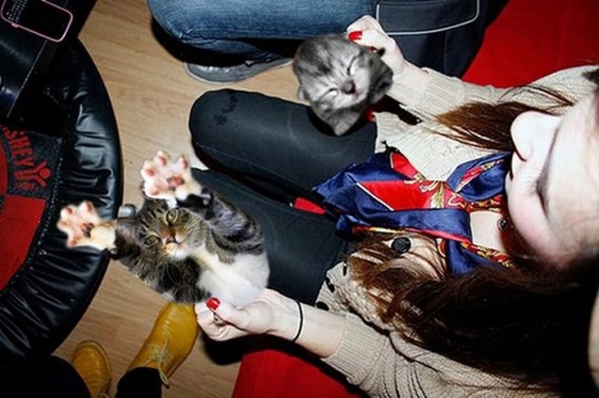 この画像を大きなサイズで見るツイッターやフェイスブックなど、未成年などがうっかり飲酒を暴露してしまい問題となっている昨今、飲酒隠蔽アイテムのひとつとして猫が使われはじめた。飲酒写真に猫画像を合成。お酒の部分をごっそり猫で隠してしまえばあら不思議、酒池肉林がモフ肉球に変貌し、鋭いヒトの目を欺けるかもしれないというそんな下心があったりなかったりするのかどうかはわからないが、ヤバそうなものをアップするときはとりあえず猫入れとけみたいな風潮になるのかな?