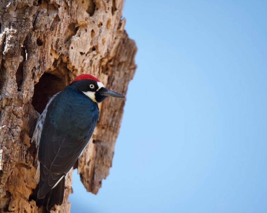 ドングリキツツキは北アメリカから中央アメリカに生息するキツツキ科の鳥。その名の通りライフワークはドングリ収集。集めたドングリは自慢のくちばしで木にコンコンと穴を開け、1つの穴に1つのドンギリをきっちりと詰め込む。