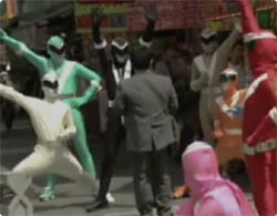 「秋葉原で大勢の戦隊レンジャーに囲まれるサラリーマン。彼の運命はいかに!?」という知っている人は知っている懐かしい映像。最初は通常モードの5人戦隊だったのが、次から次へと増えていき、最後は総勢38人となっていく。
