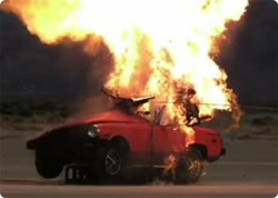 この画像を大きなサイズで見る勢い良く何かが爆破され、燃え上がるシーンは、人間の本能の何かに訴えるらしく、映画やドラマのシーンなんかでも良く使われるのだけれど、こちらの映像は、自動車を爆破させ、その瞬間を1000fpsのハイスピードカメラで撮影したもの。