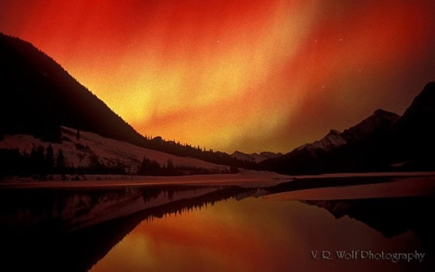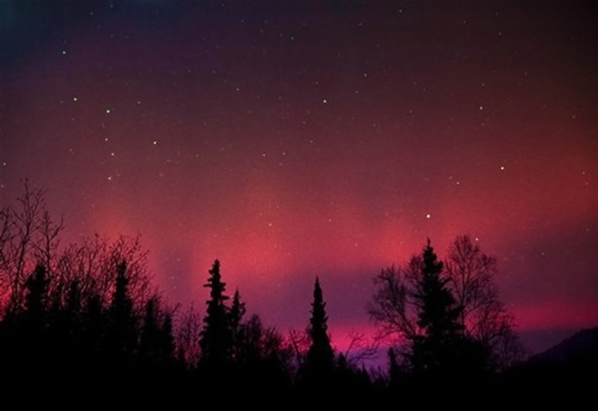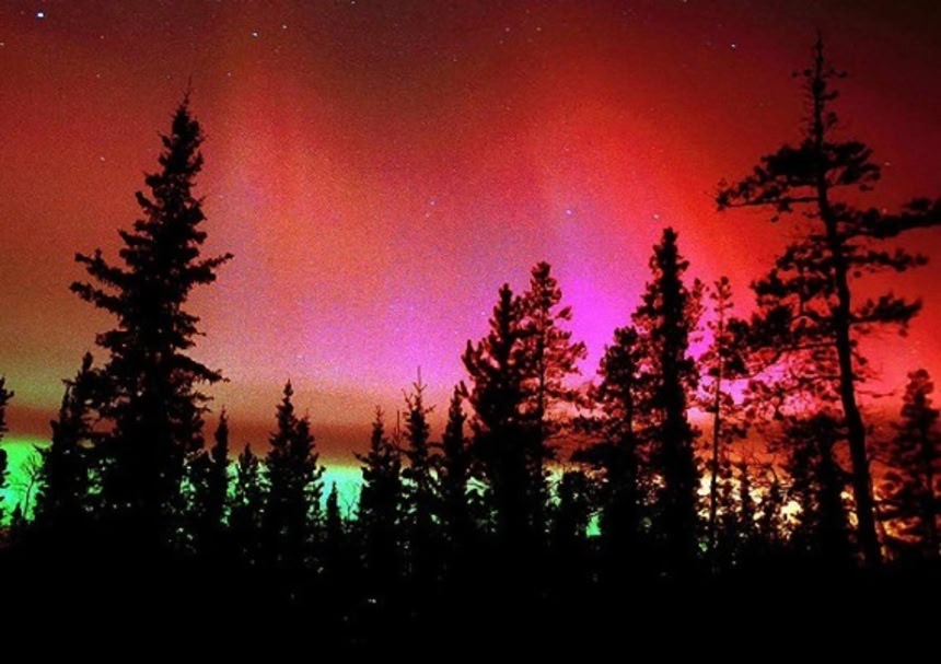 最近活発になっている太陽活動現象に伴う磁気嵐により、レアものとされる赤いオーロラが観測されたのだそうだ。