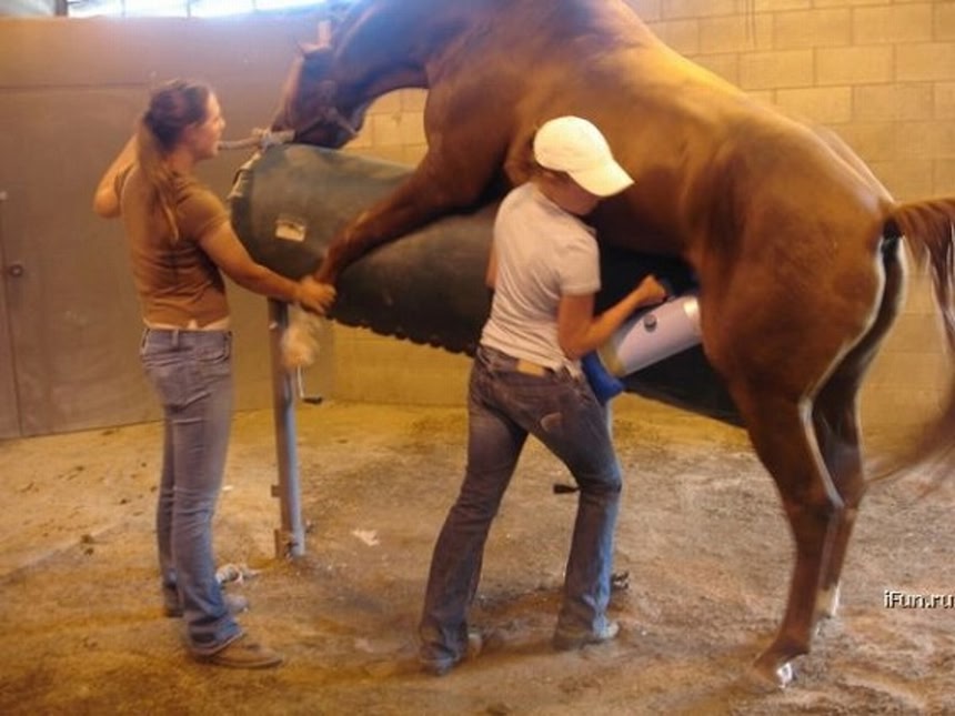 この画像を大きなサイズで見る種馬の種を取るおしごと
