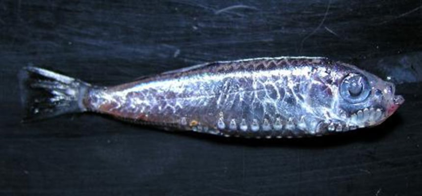 この画像を大きなサイズで見る体長は5~6センチほどで、体は銀白色の大きな鱗で覆われ、下腹部を中心に50個前後の発光器を持っている。春と秋に生まれる群れがあり、どちらも約1年で成熟し、だいたい2年で寿命となる。