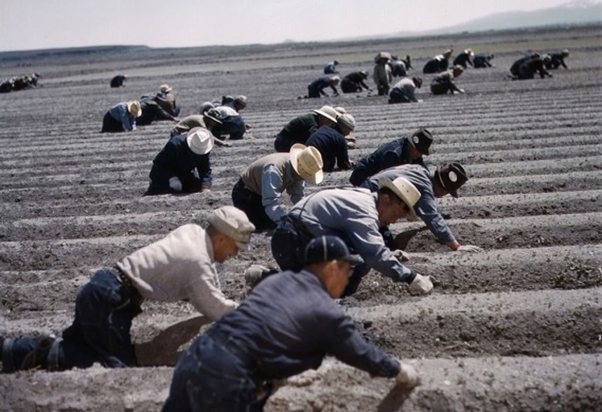 この画像を大きなサイズで見るカリフォルニア州ニューウェルのツールレイク強制収容所で働く日系アメリカ人の農場労働者