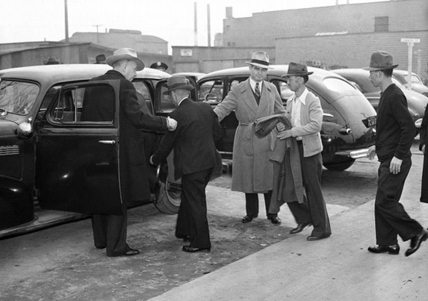 この画像を大きなサイズで見る1942年2月3日、ロサンゼルスの造船センターで働いていた300人の日系アメリカ人が海軍により連行される。