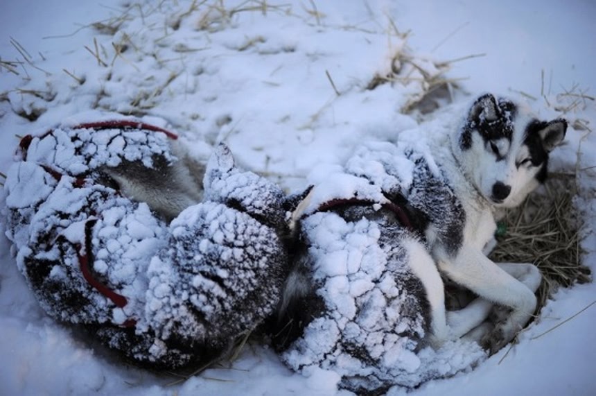 犬達の嬉々とした表情がいいね。藁を敷いてやってるのは凍傷とか低体温症を予防する為なのかね。働く犬は幸せそうだ。