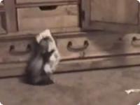 台所の流しに潜む2匹のフェレット。その様子を伺う犬。フェレットは潜みながらも犬さんにはペロペロと舐めて欲しい願望がいったりきたり繰り返しみたいだったんだ。