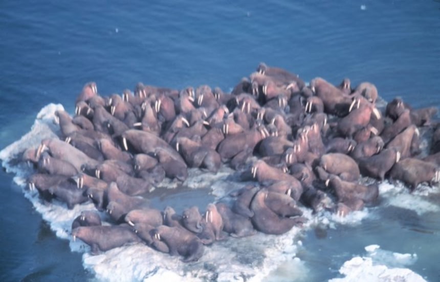 ちなみにセイウチは氷山や海岸に群れを形成して生活している。オス同士の間でメスをめぐる戦いに勝ち抜いた個体が、多くのメスを所有するハーレムを形成するんだ。