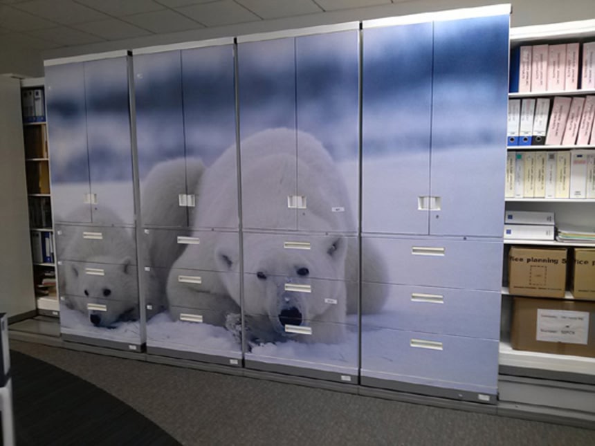 この画像を大きなサイズで見る資料が入っているロッカーにはホッキョクグマ。「ちゃんと仕事しろ」と冷ややかに訴えてくる。北極だけに。今寒いこといったかもしれないけど気にしたらだめだ。