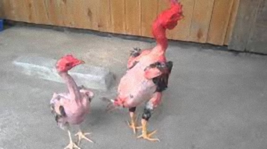 この毛のないニワトリは通常のニワトリに比べて成長も早いそうで、食用にする為に羽を取る手間がかからない。