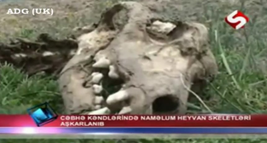 カフカス地方に位置する旧ソビエト連邦の共和制国家、アゼルバイジャンにて4月6日に住民らにより発見されたという謎生物の骨。地元当局と住民らは、このような生き物の骨格はいまだかつて見たことがないと主張している。