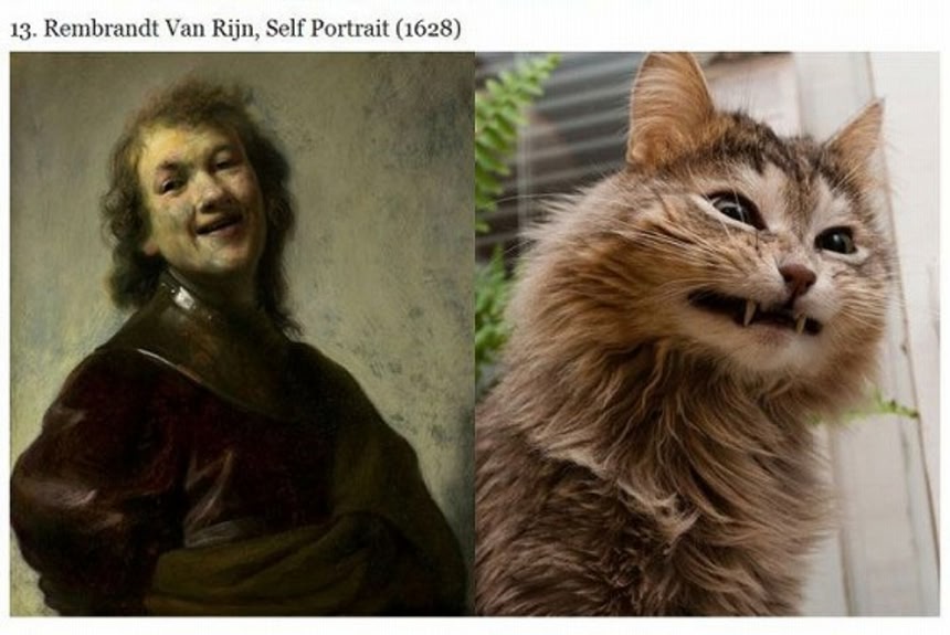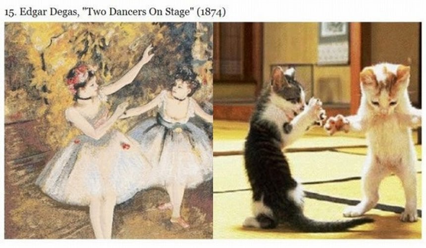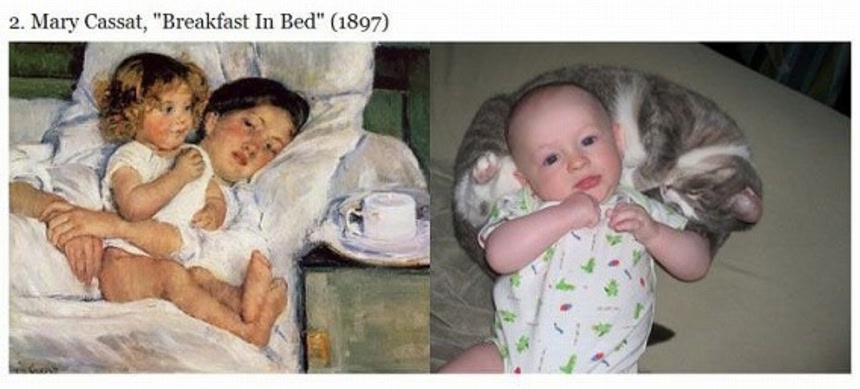 一分間にどれだけの数の猫画像、猫動画が世界中からアップされているのだろう?おそらくそれは莫大な数になるんじゃないかと思われるほどネットと相性のよい猫。かつてアップされ、ネット上で出回った猫画像の中にはあの名画と非常に親和性のある、っというかかなり似ている構図のものがあるようだ。