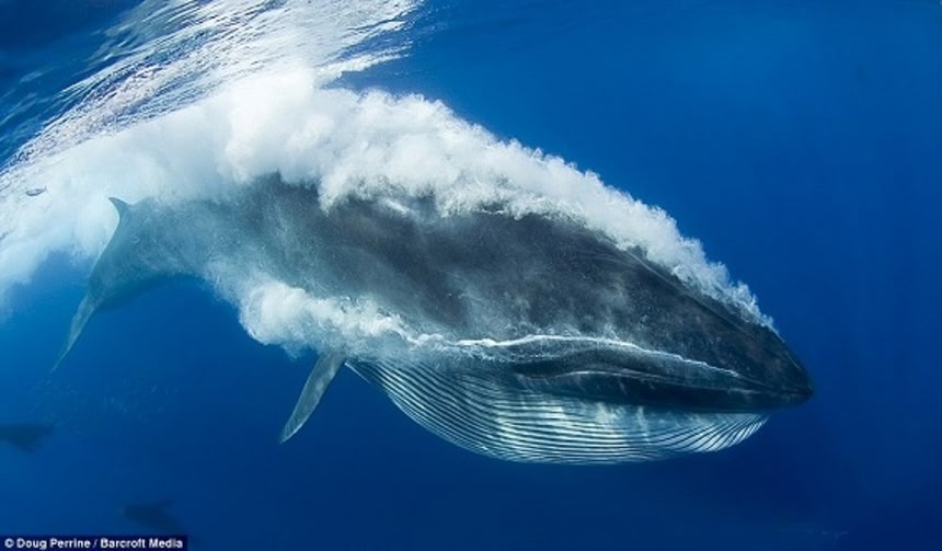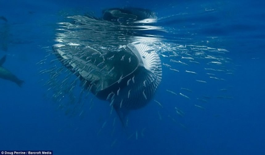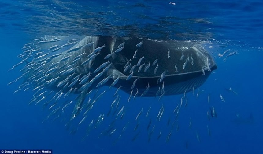 この画像を大きなサイズで見るニタリクジラは、クジラ目ヒゲクジラ亜目に属するヒゲクジラの一種。体長は最大15.5メートル。ニタリクジラが餌とするのはプランクトン、いわし等の小魚やアジなどの中型魚である。これらの画像は15メートル級のニタリクジラがイワシの群れをパクっと丸呑みする瞬間をアマチュア水中写真家ダグ・ペリンがとらえた大迫力ショットなんだ。