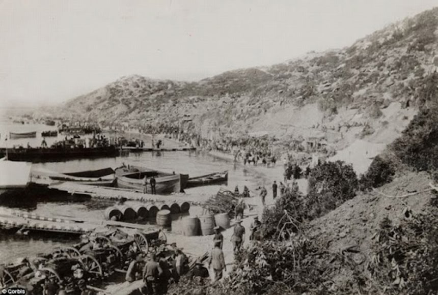 この画像を大きなサイズで見る1915年、ガリポリの戦いの舞台となったトルコ、ゲリボル半島の海岸。ここではイギリス、オーストラリア、インドの兵士が数多く戦場に散っていった。