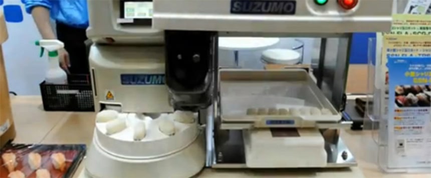 こちらは時速3300個で寿司を握る寿司ロボットの映像