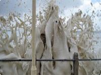 アフリカ、ケープタウンの海岸に大量の泡が押し寄せる自然現象。とても稀な現象で、一説には、海の中の塩分や化学物質、死んだ植物、腐敗した魚と海藻の排泄物のようなものなどの海の中の不純物が激しい嵐によりかき混ぜられ、うまい具合に調合され発生すると言われているんだが、正確にはわかっていない。