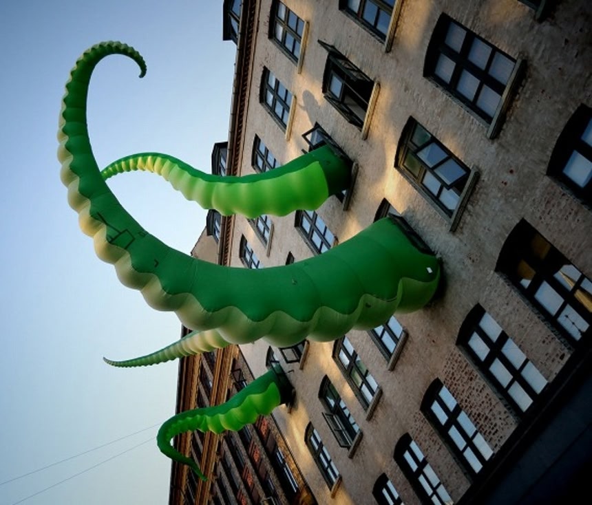 主に空気注入して膨らませた物体を街に設置し、行きかう人々に新鮮な驚きを与えるというパフォーマンス活動を行っているFilthy Lukerによるストリートアート作品の数々。見慣れた景色も風船をつけるだけでこんなにも新鮮になるものなんだね。