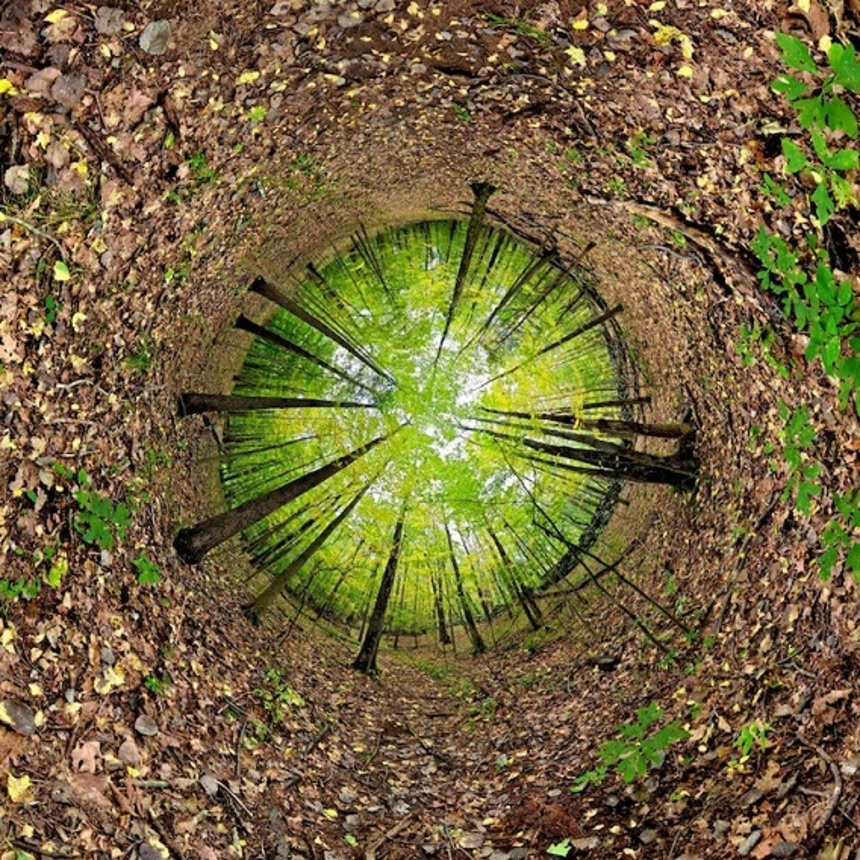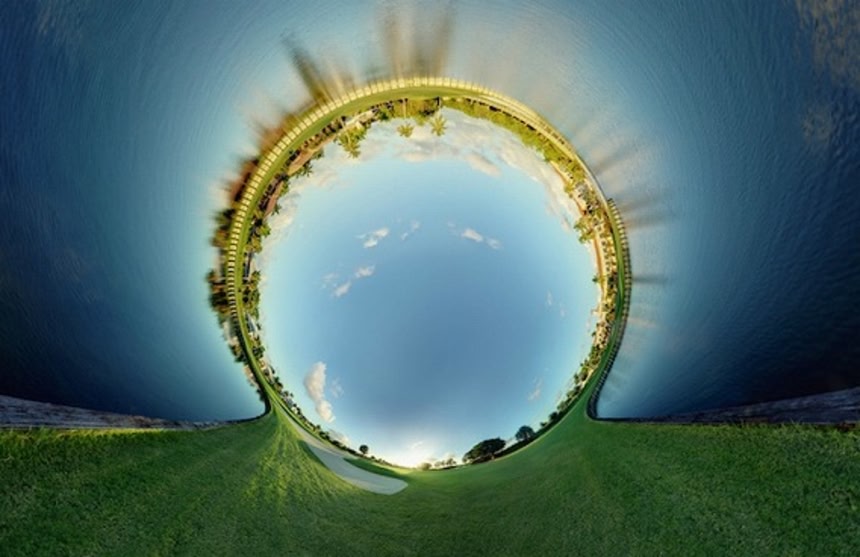 映像作家であり写真家でもあるランディ・スコット・スレイビンの作り出した360度の世界。それは風景写真を円形に歪ませたもので、1枚の360度画像を作るのに100枚の風景写真を必要とするという。