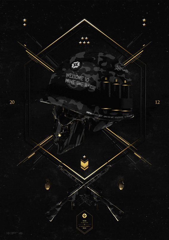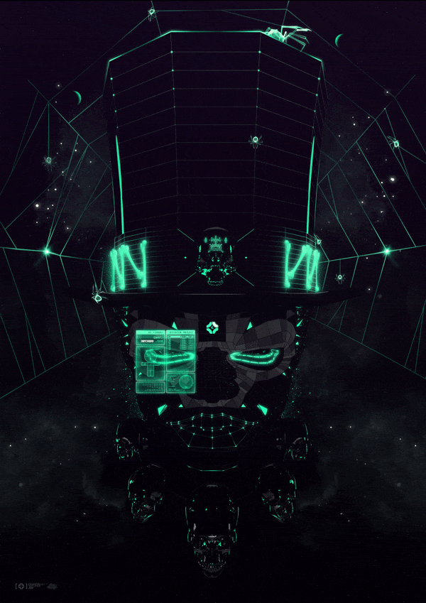 「死のモーション」と名づけられた、ネオン調のイラスト画像の一部分が動くというGIFアニメ。ダースベイダー的なSFテイストをかもし出しているんだ。
