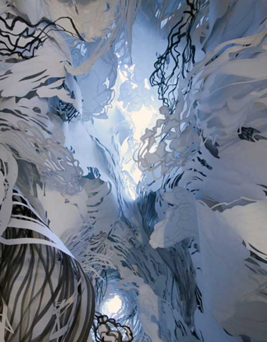 切り抜いたトレーシングペーパーを使った巨大インスタレーションが