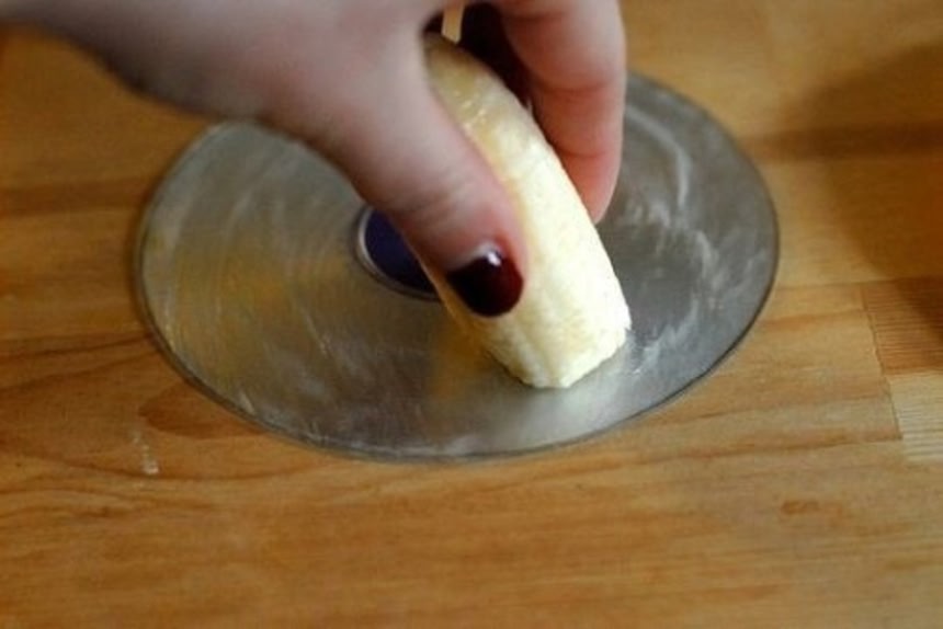 この画像を大きなサイズで見るDVDやCDは、バナナを塗って磨くとクリーンに