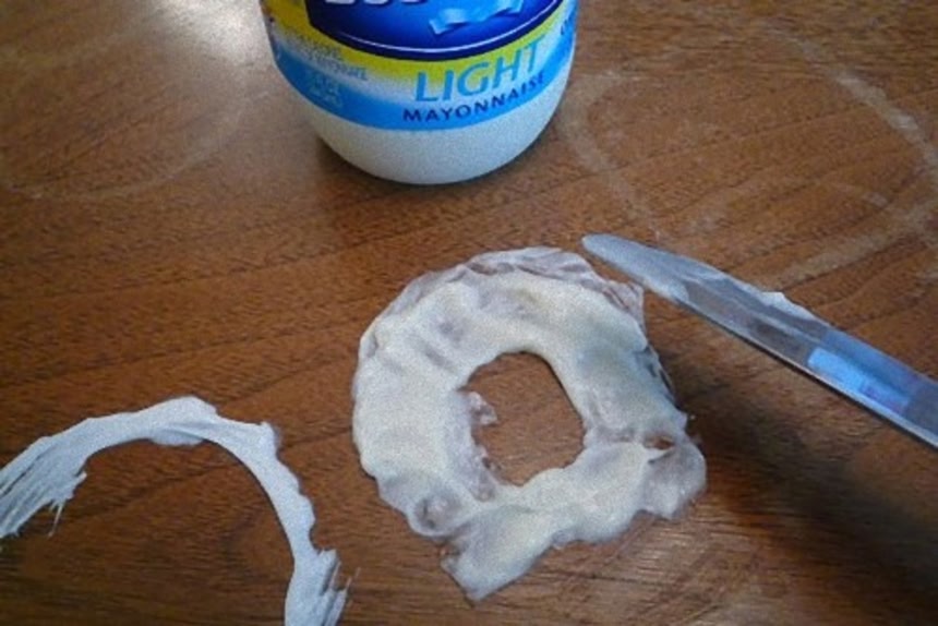 この画像を大きなサイズで見る木製家具の水シミにはマヨネーズを