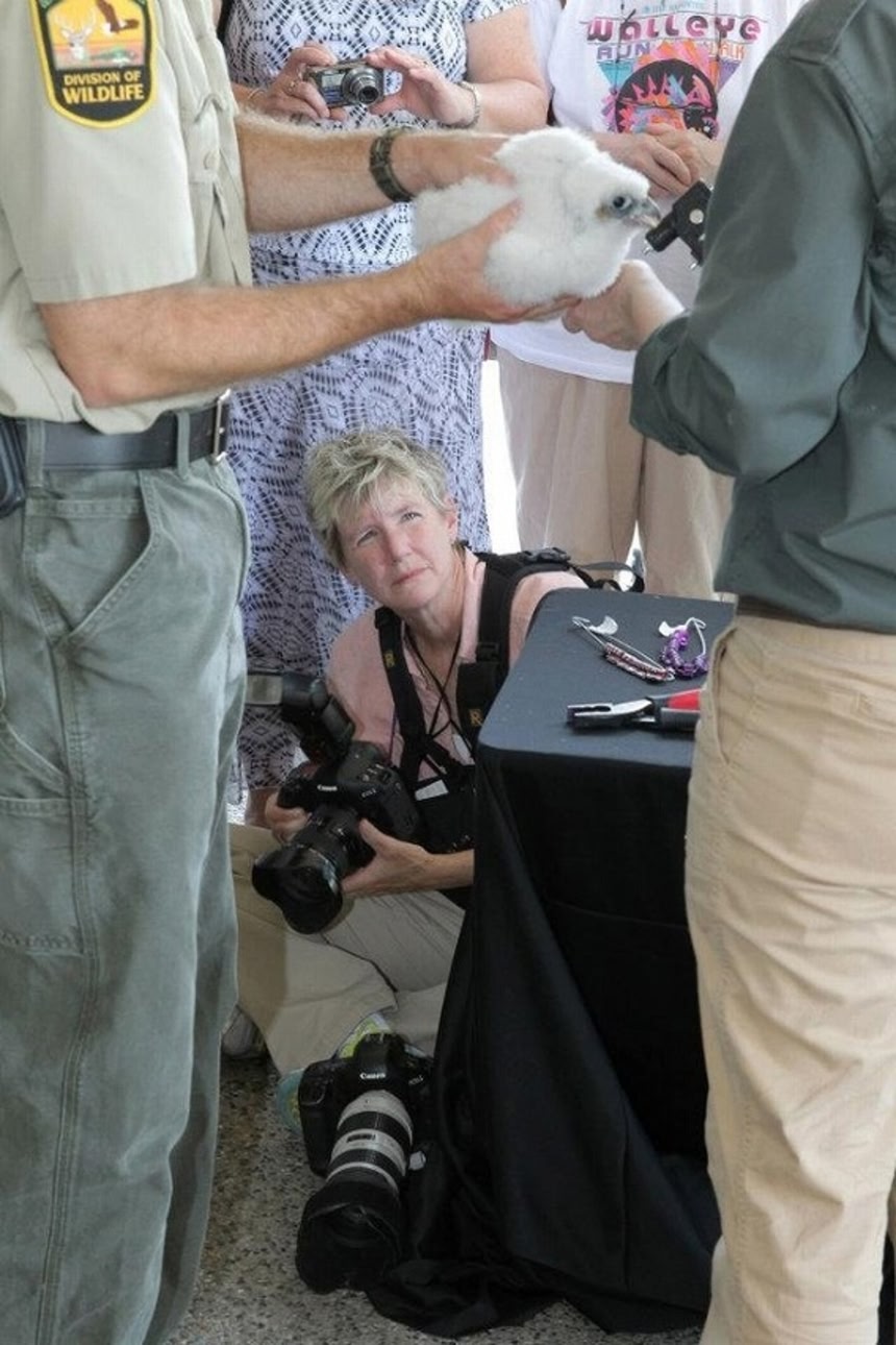 トレド大学では、毎年この光景が展開されているそうで、今では取材に来たカメラマンたちも、しっかりハヤブサ母の攻撃対象となっている。