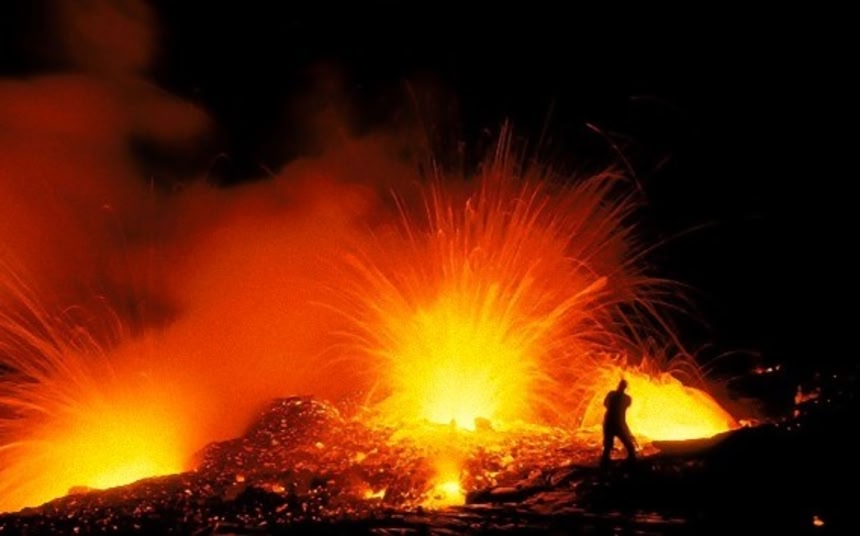 この画像を大きなサイズで見る火山の溶岩を採取する為、命をかける研究者の映像