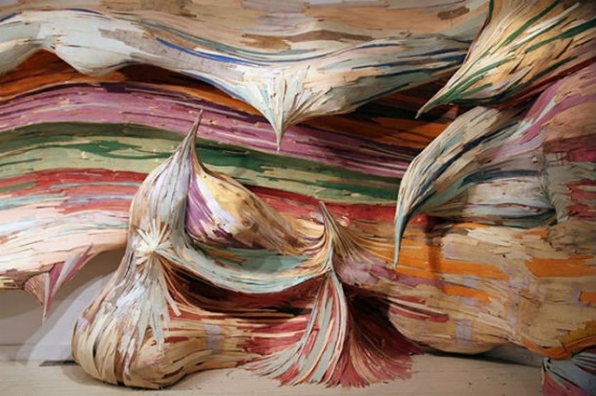 ブラジル、サンパウロ在住のアーティスト、 エンリケ・オリベイラ氏の手がけた作品は、植物の躍動感というか侵食具合を廃材をつかって表現したオブジェ。サンパウロの町から出る廃材を回収し、アートギャラリーや住宅の壁や床一面を覆い尽くすようにつなぎ合わせ、奇妙な光景を作り上げているんだ。