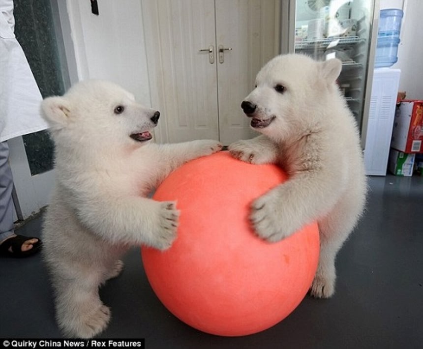 ソース:Un-bearably cute twin polar bears celebrate their 100th-day birthday in China | Mail Online