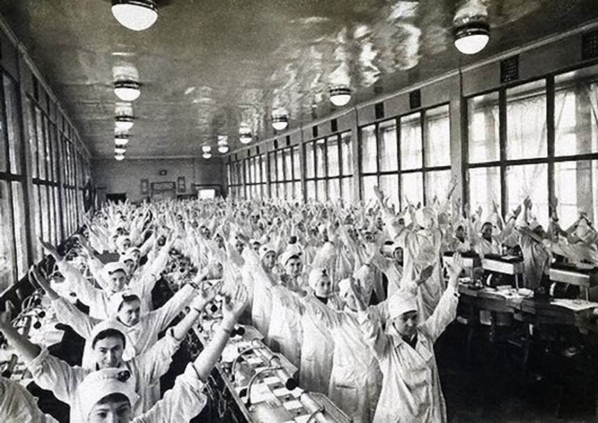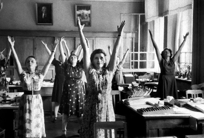 ロシアがソビエト連邦だった、1922年から1991年の間、国民は毎日11:00になると、職場で、学校で、ラジオから流れる曲に合わせて、体操をする習慣があったそうだ。日本のラジオ体操的なものと一緒みたいだね。
