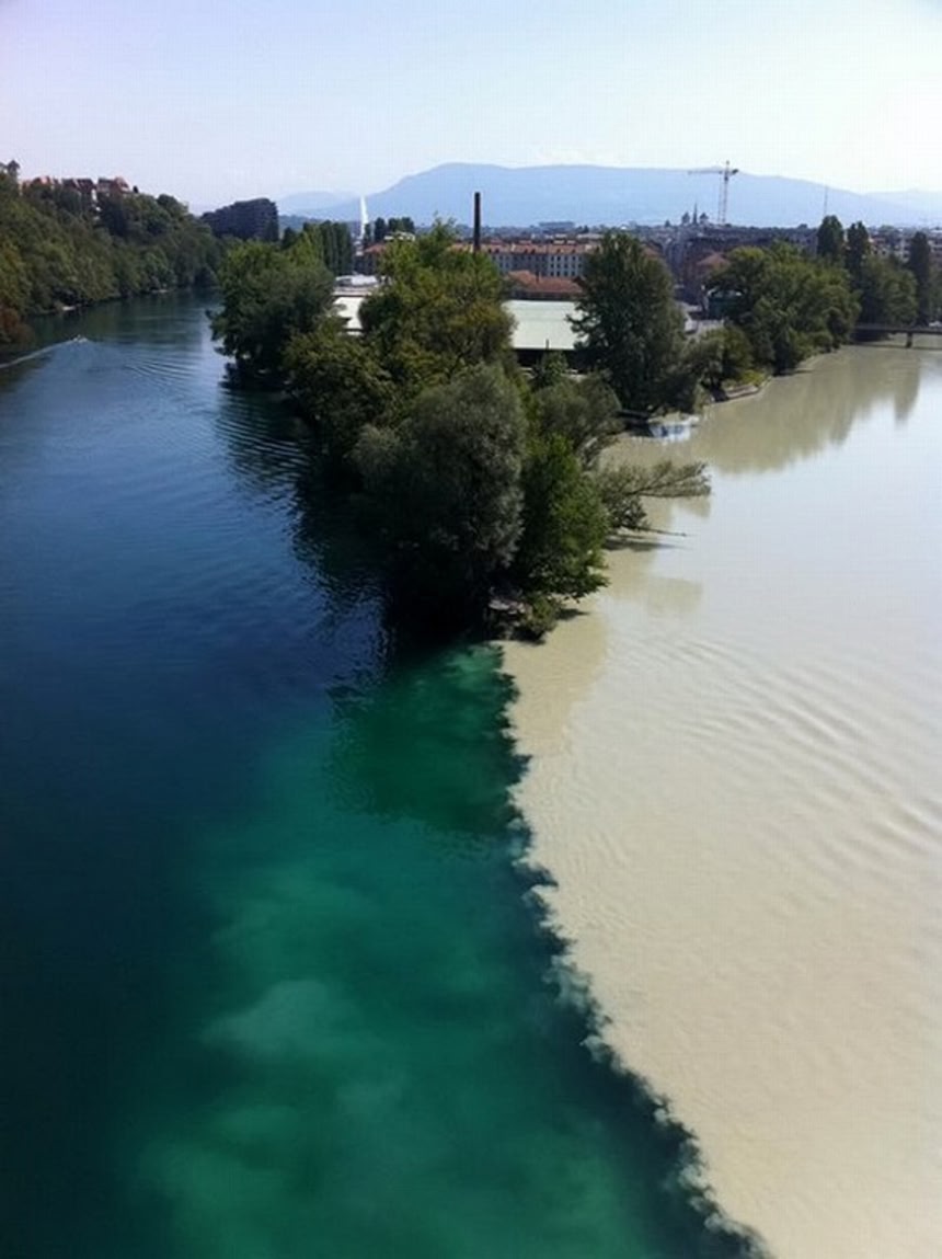 1.スイス、ジュネーブ ローヌ川とアルヴ川の合流点