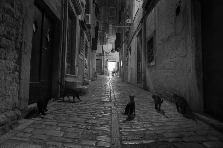 海に突き出した島がまるごと旧市街になっており、石灰岩の石畳が敷き詰められた路地裏は、猫たちの格好のたまり場となっている。