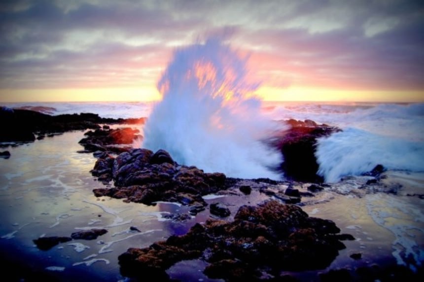 米オレゴン州レーン郡 にあるペルペツア岬は、かつてネイティブアメリカン(インディアン)が、貝やカニなどの魚介類をふんだんに採取していた場所。かつての貝塚に使用されていた穴が、時の経過と共に波に飲み込まれ、まるで巨大な井戸のようなダム穴のような景色を作り上げたそうだ。