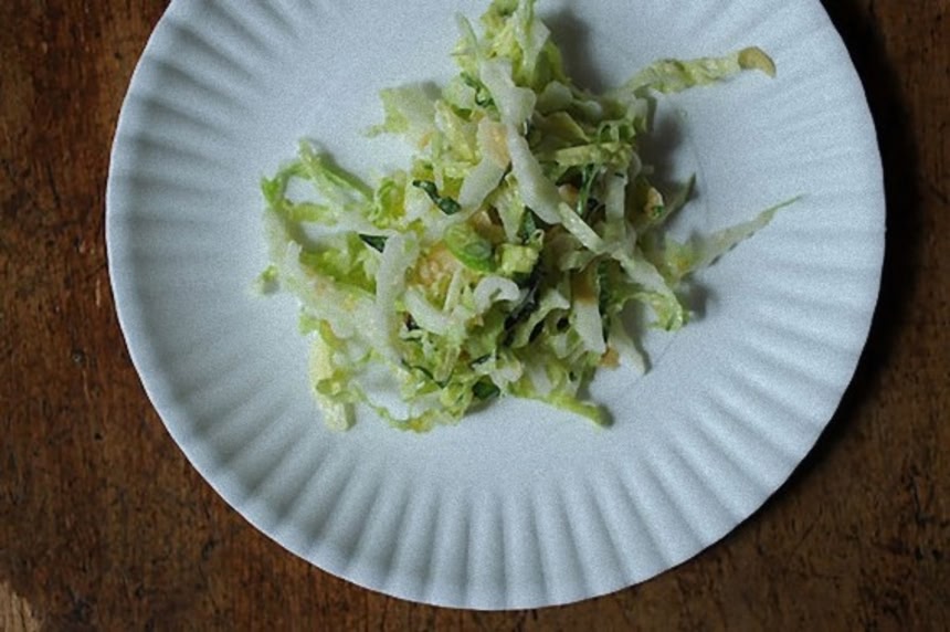 ■作り方■a.スライスした白菜とアーモンド、ゴマ、バジル、青ねぎを合わせる。