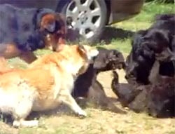 それでも一度火がついた喧嘩魂は収まることを知らず、再び再熱。今度は3匹の犬が同時に止めに入ったのだ。これで一件落着かと思いきや・・・