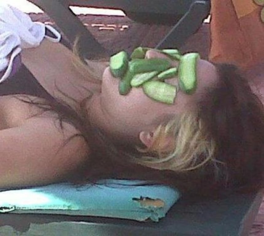 この画像を大きなサイズで見るキュウリパックをしている女性を見た時
