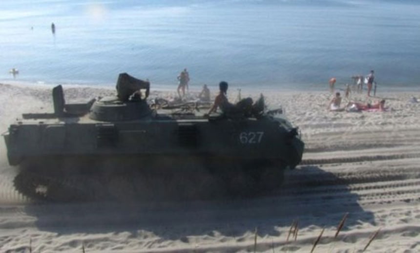 なんで海水浴場の中を軍の自走砲とかが走っているんだろう。