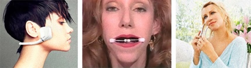 30年代や40年代は、金属の固定器で、頬ににこやかなえくぼをつくる機器や、しわを吸引して消すという機械が発明された。現代でも、ジョーバやストレッチハンモック、ベルトマシンまで、努力せずにほっそりした体型を保つために開発されたおかしな発明は後を絶たない。