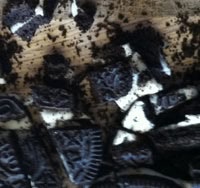 この画像を大きなサイズで見る誕生祝いや人気のある囚人達が晴れて釈放されるときなどに登場するこの手作りケーキは、刑務所内で支給されるオレオクッキー、ピーナツバターそしてM&Msでできている。オレオクッキーをクリームとクッキー部分に分け、細かく砕いたクッキーと水を使って固めて、ケーキの層を創り上げる。クッキーの中のクリームは飾り用のアイシングとして使われる。ピーナツバターを別の層のアイシングにし、細かく砕いたM&Msを上に飾る。