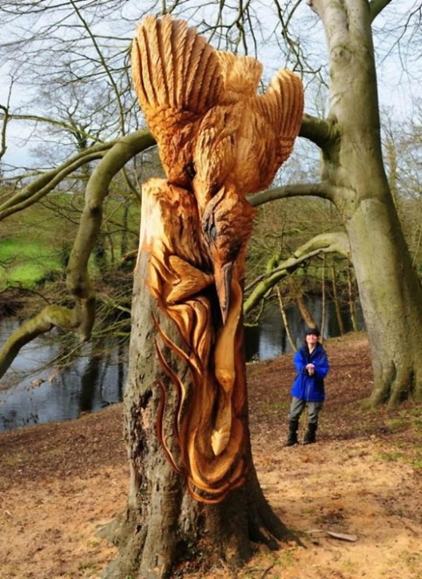 イギリス人アーティスト、トミー・クラッグスは、森林伐採により切り倒されたり、天災により折れてしまい、放置されたままとなっている木から彫刻を作ることを思いついた。そのまま利用されることなく横たわっている木に、様々な彫刻を施し、第二の人生を歩んでもらうというものだ。