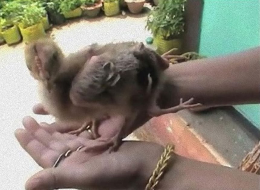 インドの北東部シッキム州のKitam村という村で生まれた4本足のニワトリは、5か月前に孵化したそうだ。足や手が多い多肢症は、先天性異常の一種で、人間を含む他の動物にも、低確率ながら、一定比率の割合で起こりうることなのだが、このようにお尻の部分にきれいにそろって生えているのは珍しいとのこと。